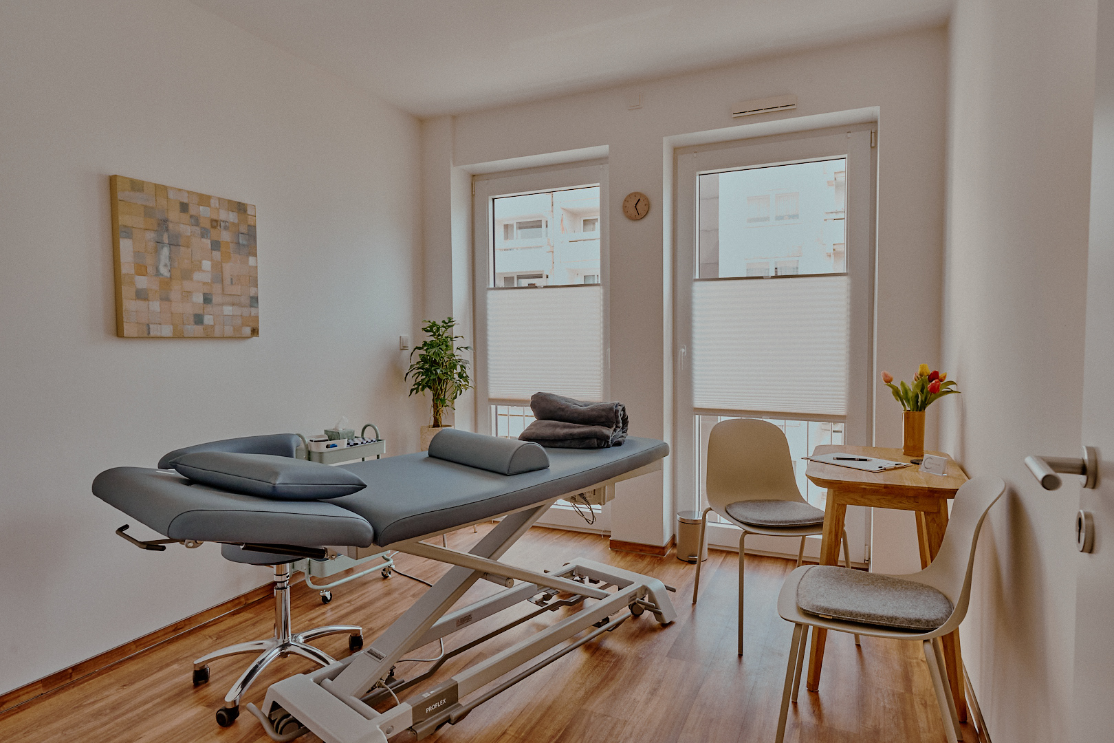 Für die Osteopathie-Praxis in Köln-Nippes habe ich eine Bildserie realisiert, die Räume, Team und Atmosphäre gleichermaßen zeigt. Ziel war es, eine klare, ruhige Bildsprache zu entwickeln, die Vertrauen schafft und die Praxis so zeigt, wie Patient:innen sie erleben: offen, modern und persönlich. Die Fotos kommen auf der Website sowie in der Außendarstellung der Praxis zum Einsatz.